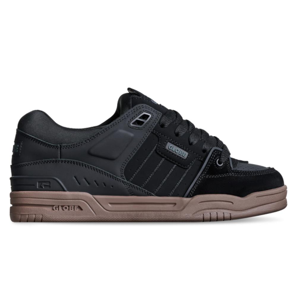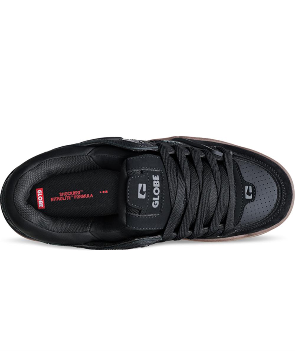La Fusion in Black/Night è una scarpa skateboard robusta e completamente imbottita, realizzata in action nubuck/nubuck sintetico. Presenta una fodera a calzino con rinforzo ollie in TPR. Ha una suola Globe S-Trac™ con stabilizzatore del tallone in TPR.